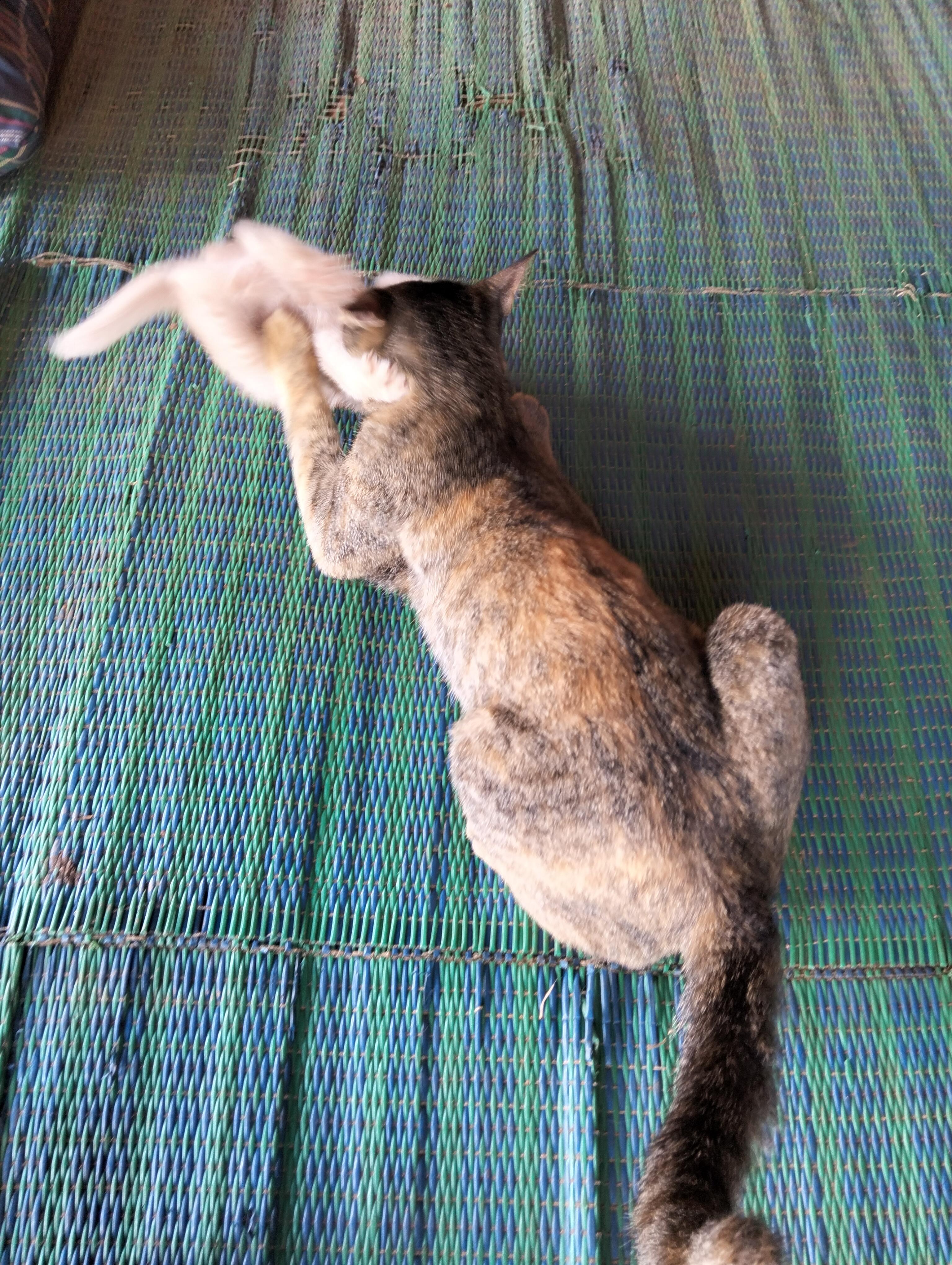 แม่แมวกับลูกแมวหยอกกันอย่างมีความสุข