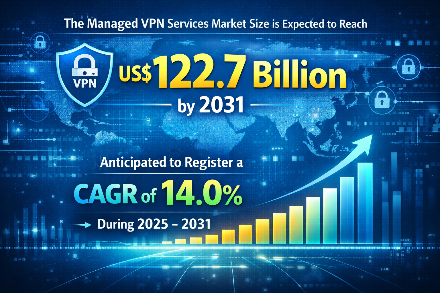 The Managed VPN Services Market is poised for substantial expansion, with projections indicating it will reach US$ 122.7 billion by 2031, registering a CAGR of 14.0% during the forecast period from 2025 to 2031. The market has evolved from being a niche enterprise networking solution to a strategic pillar of digital infrastructure. Organizations across industries are increasingly prioritizing secure, scalable, and cost efficient connectivity solutions to support distributed workforces, cloud applications, and global operations.