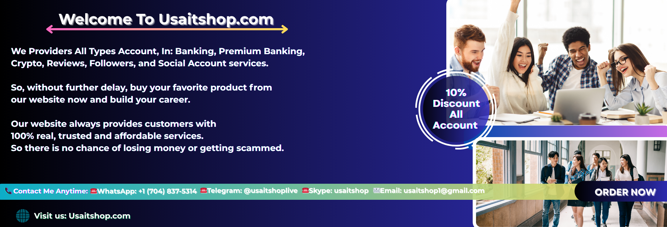 We Providers All Types Account, In: Banking, Premium Bank Crypto, Reviews, Followers, and Social Account services.