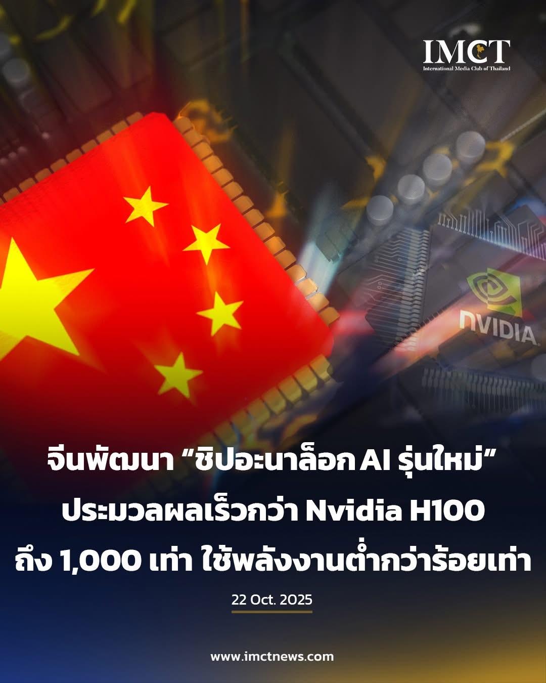 จีนบรรลุความสำเร็จในการพัฒนาชิปอะนาล็อก AI 📌ที่มีประสิทธิภาพเหนือกว่า Nvidia H100 ถึง 1,000 เท่า ใช้พลังงานน้อยกว่า 100 เท่า ผ่านเทคโนโลยี RRAM ทะลุข้อจำกัดความแม่นยำระดับ 24-บิต เปิดศักราชใหม่ของการประมวลผลพลังงานต่ำ 👉SCMP รายงานว่า ทีมนักวิจัยจากมหาวิทยาลัยปักกิ่งประสบความสำเร็จในการพัฒนาชิปอะนาล็อกสำหรับปัญญาประดิษฐ์ที่สามารถประมวลผลงานคณิตศาสตร์ซับซ้อนได้เร็วกว่าชิป GPU รุ่นท็อปของ Nvidia H100 ถึง 1,000 เท่า พร้อมใช้พลังงานต่ำกว่าระบบดิจิทัลปัจจุบันถึง 100 เท่า ตามบทความวิจัยที่เผยแพร่ในวารสาร Nature Electronics ฉบับ 13 ตุลาคม ชิปต้นแบบใช้เทคโนโลยี Resistive Random-Access Memory (RRAM) ที่ช่วยให้การจัดเก็บและประมวลผลข้อมูลเกิดขึ้นในตัววัสดุเดียวกัน ขจัดปัญหาคอขวดของสถาปัตยกรรมคอมพิวเตอร์แบบดิจิทัลที่ต้องแยกส่วนหน่วยความจำและการประมวลผล ซุน จง หัวหน้าทีมนักวิจัยจาก Institute for Artificial Intelligence ระบุว่า การค้นพบนี้เป็นการเอาชนะข้อจำกัดด้านความแม่นยำของอะนาล็อกคอมพิวติ้งที่เป็นปัญหามานานกว่าศตวรรษ โดยสามารถรักษาความละเอียดระดับ 24-บิต เทียบเท่าการคำนวณแบบดิจิทัล ผลการทดสอบการแก้สมการเมทริกซ์ขนาดใหญ่และการจำลองระบบสัญญาณแสดงให้เห็นว่า ชิปดังกล่าวมีประสิทธิภาพเหนือกว่าชิปดิจิทัลระดับสูงในตลาดหลายร้อยถึงหลายพันเท่า ขณะใช้พลังงานเพียงร้อยละไม่กี่ของระบบปกติ เทคโนโลยีนี้เปิดโอกาสสำหรับการพัฒนาคอมพิวติ้งพลังงานต่ำในยุค AI และ 6G รวมถึงการประยุกต์ใช้ใน Edge AI และการเรียนรู้ของเครื่องโดยไม่ต้องพึ่งพาระบบคลาวด์ #imctnews รายงาน